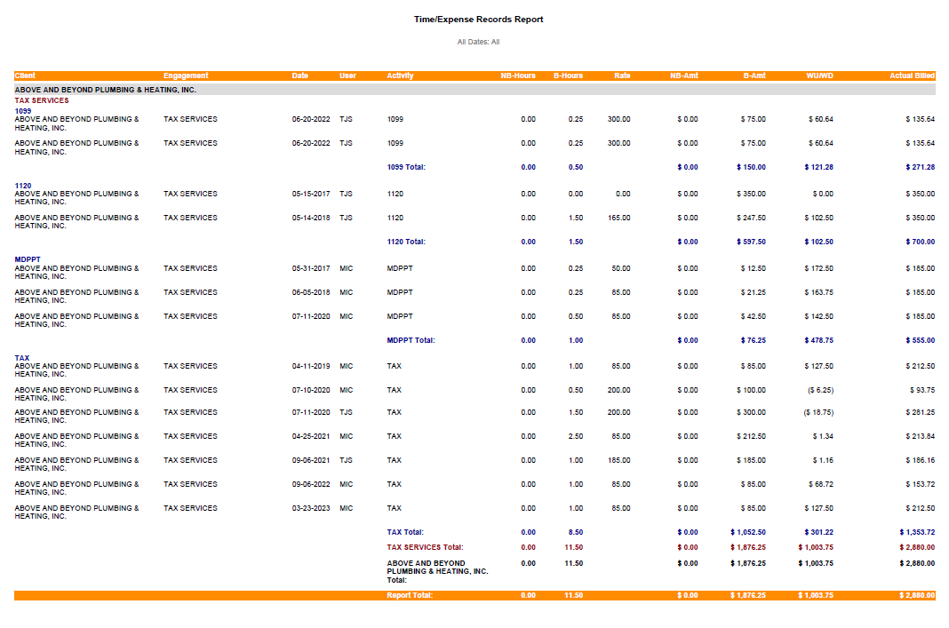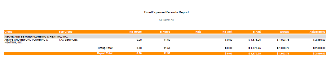 - Examples of the Time/Expense Records Report